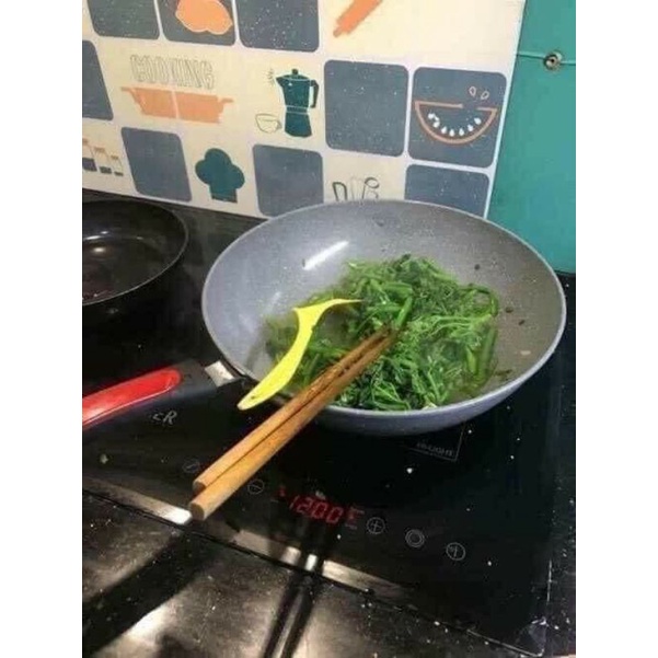 - Chảo được tráng lớp mặt đá ceramic nên đun, xào không lo bị bong tróc hay dính ạ