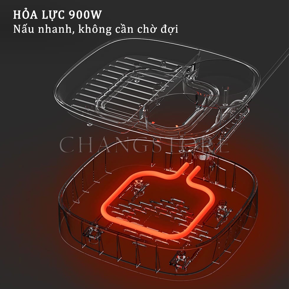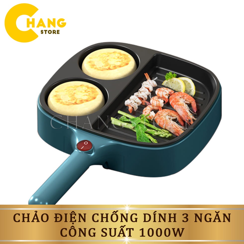 Chảo Đá Chống Dính 3 Ngăn Căm Điện Cao Cấp Công Suất Lớn 1000W Tiện Lợi
