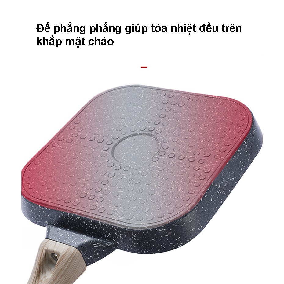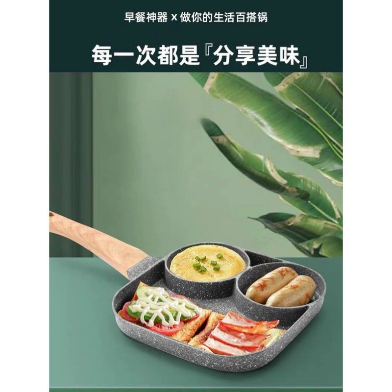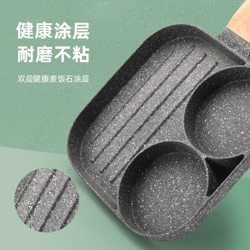 - Chảo chống dính vân đá 3 ngăn có thể dùng để chiên trứng, làm bánh, xào, nấu, rán các món ăn...