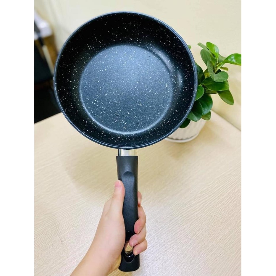 - Chảo đá chống dính cao cấp, chảo lòng sâu tiện lợi giúp bạn thoải mái nấu ăn với số lượng nhiều mà không lo thức ăn bị văng ra ngoài.