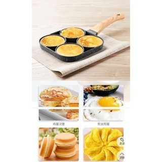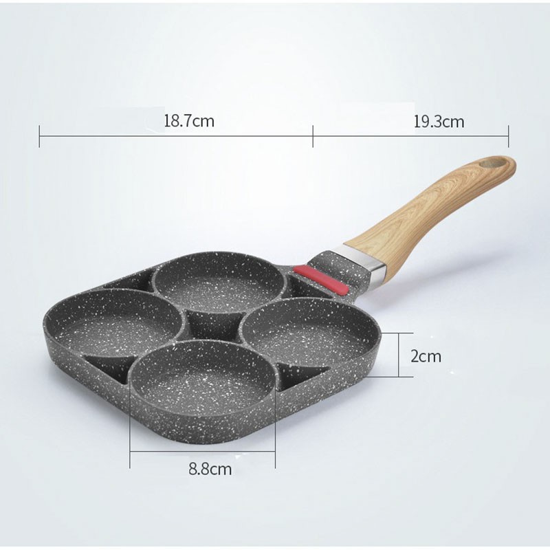 ✅ Khuôn Chảo Chiên Rán Trứng Làm Bánh 4 Ngăn 4 Lỗ Chống Dính- Chống Dính Tay Cầm Gỗ