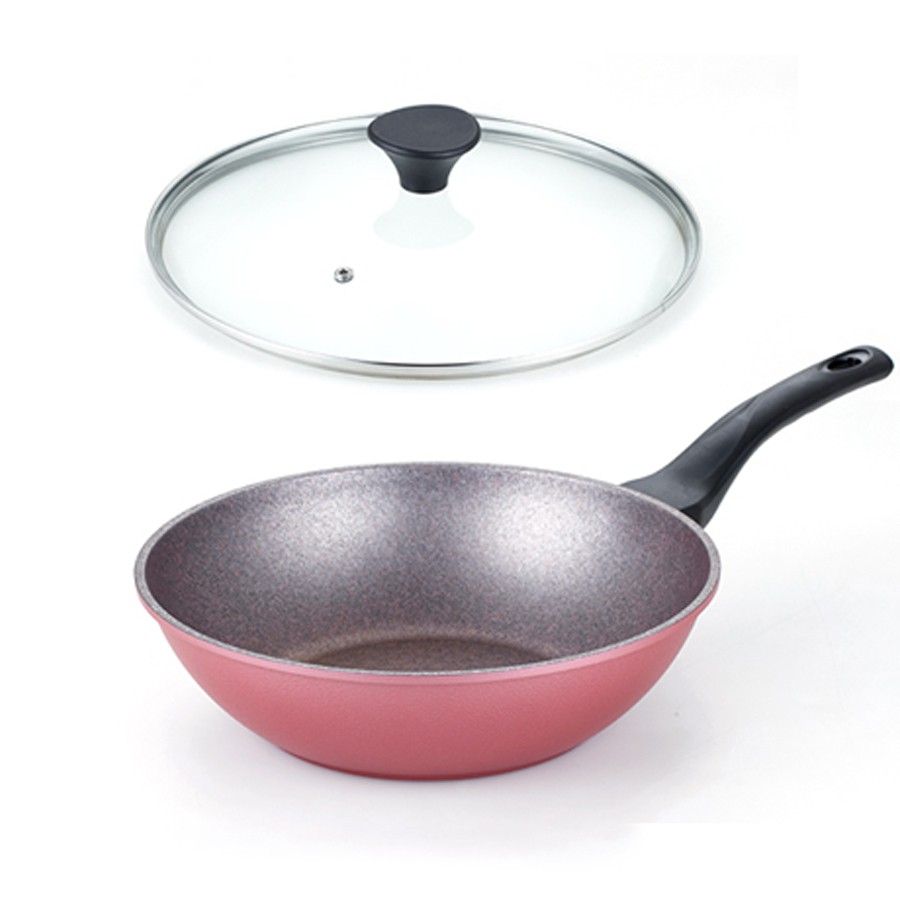 Chảo đá chống dính Ecoramic siêu bền -28 cm - tròn lớn-Curling stone Wok pan and Glass