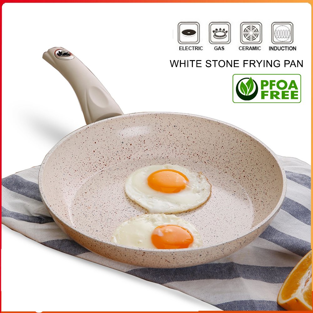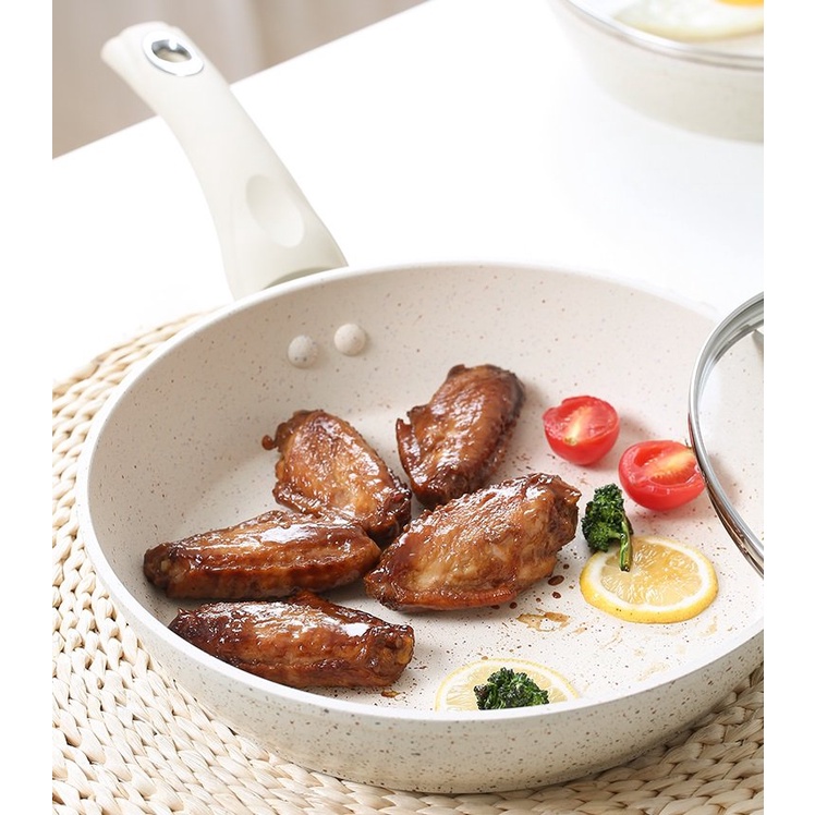 Chảo đá chống dính vân đá dùng cho bếp từ màu trắng kem 20-24-28cm