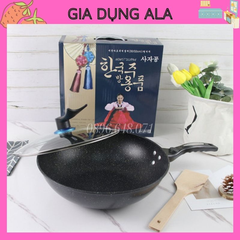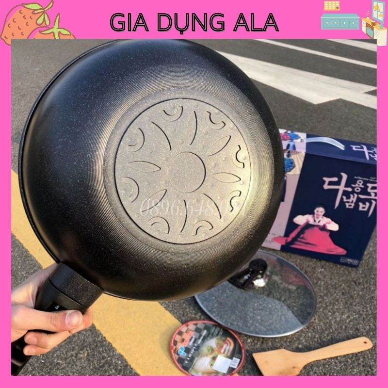 Chảo Đá Chống Dính Lòng Sâu Bếp Từ Có Nắp Rán Xào Đa Năng Đá Sâu Coopia Hàn Quốc Dùng Mọi Loại Bếp