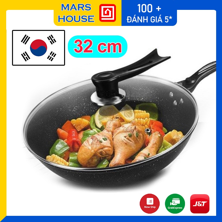 Chảo Đá Chống Dính Siêu Bền Nhập Khẩu Hàn Quốc Có Nắp Kính Size 32 cm