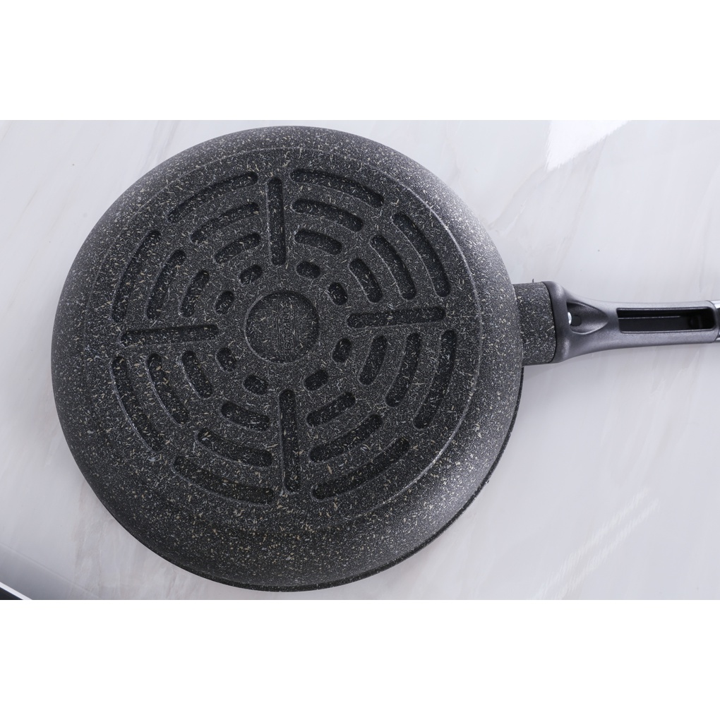 Chảo đá chống dính được làm từ hợp kim nhôm. Sử dụng công nghệ đúc Hàn Quốc cho sản phẩm bền và chắc chắn hơn.