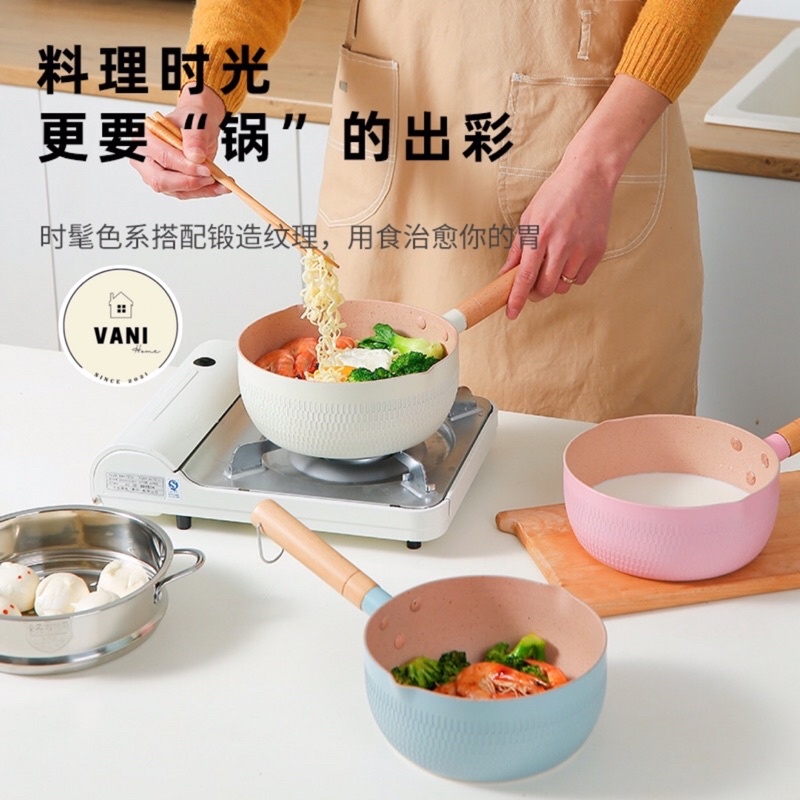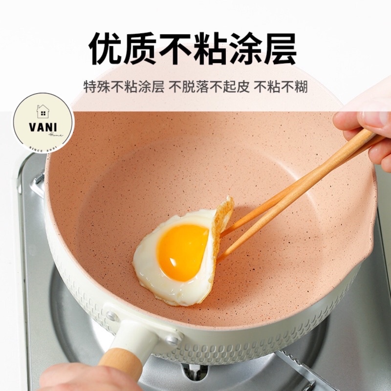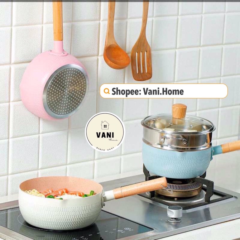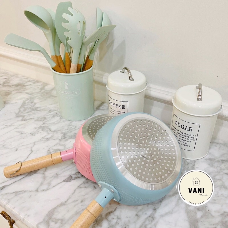 Nhà cửa & Đời sống > Dụng cụ nhà bếp > Chảo || Chảo đá đáy từ chống dính sâu lòng đa năng tay cầm gỗ dài Pastel - Chảo chống dính lúa mạch bếp từ 18cm xinh xắnCòn hàng