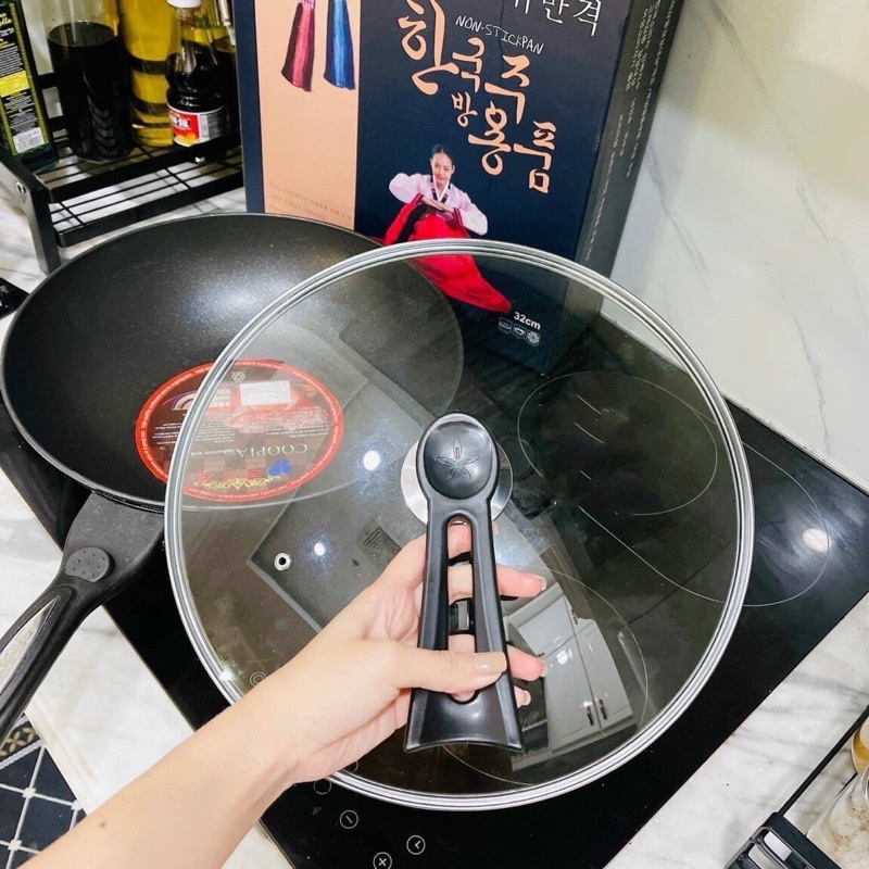 Chảo đá hàn quốc có nắp- tặng kèm muỗng - sz 32