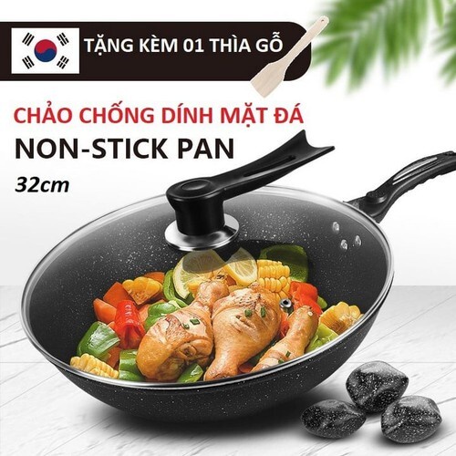 Chảo đá hàn quốc sâu lòng 32cm,chảo dành cho bếp từ kèm vung kính(SIÊU TO)