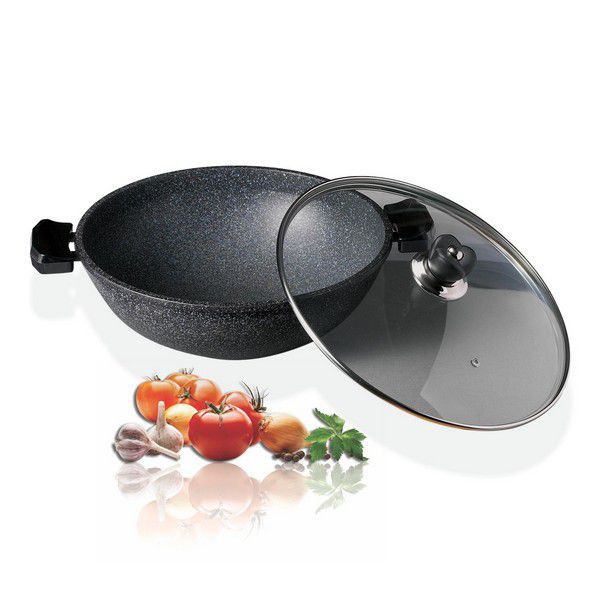 Chảo đá hoa cương 2 Quai lòng sâu 30cm, nắp kính sang trọng