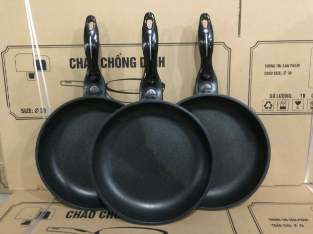 - Tay cầm của chảo làm bằng nhựa bakelit chịu nhiệt siêu bền