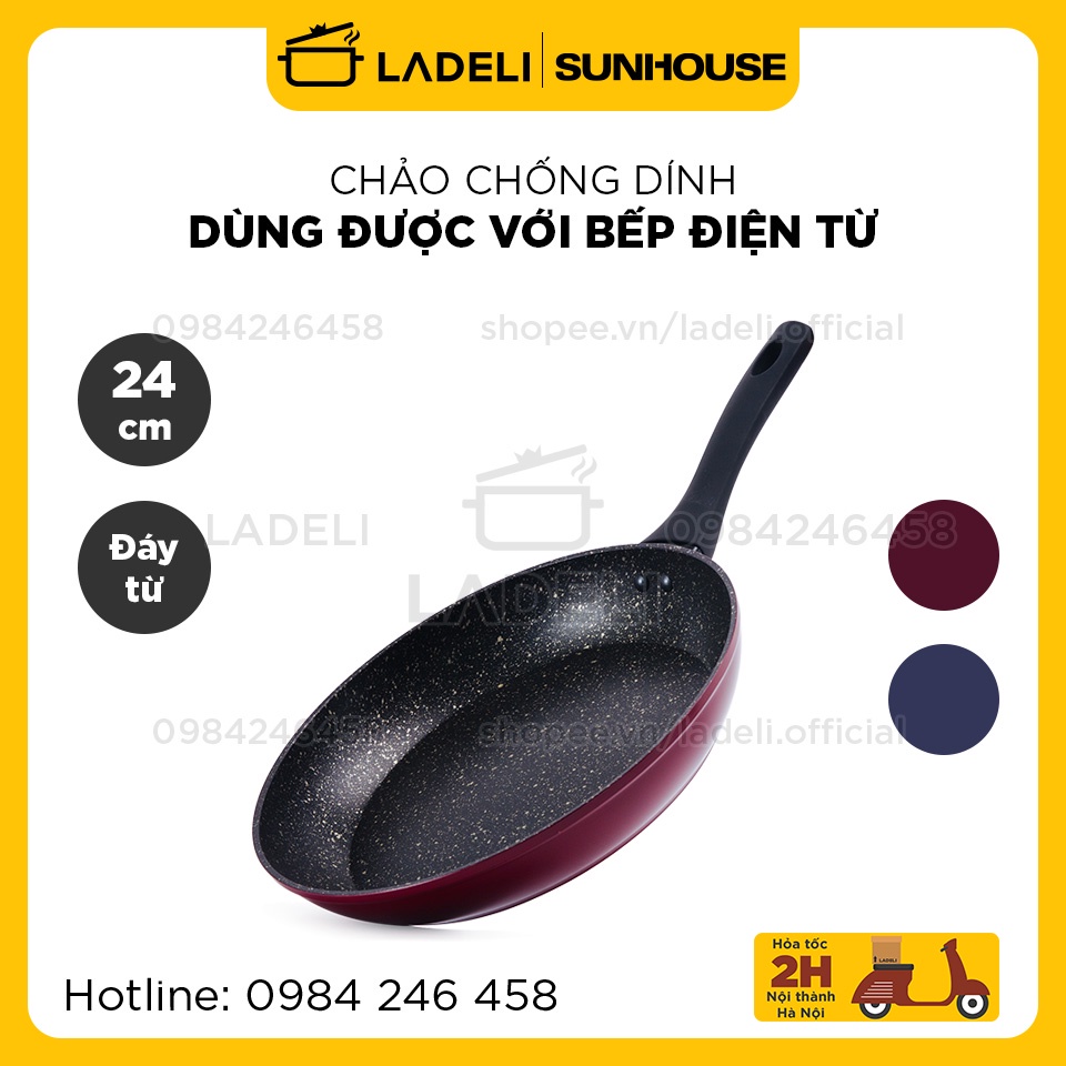 Chảo đá hoa cương đáy từ SUNHOUSE SFP24B màu xanh/đỏ size 24cm
