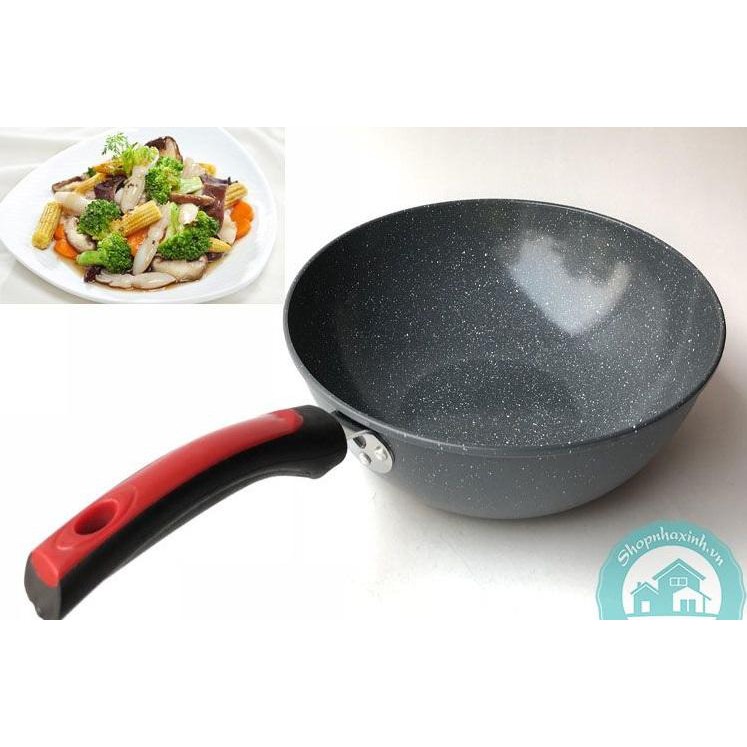 Chảo đá hoa cương sâu Korea Vân Đá R200 Sâu Lòng 32cm Chống Dính Công Nghệ Mới Dùng Được Mọi Loại Bếp