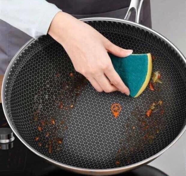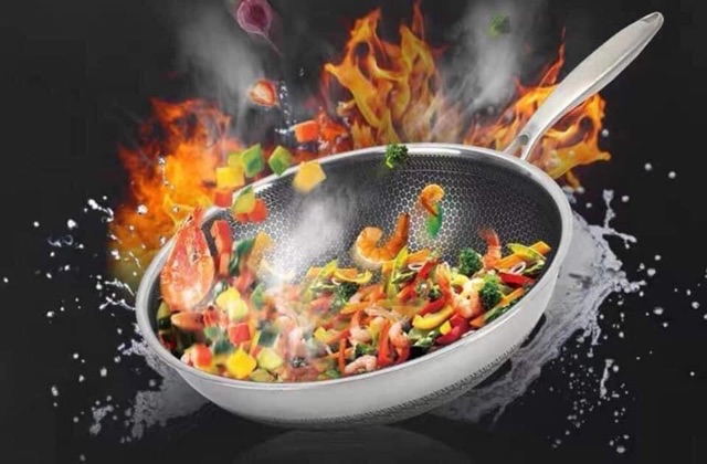 - Chảo được tráng lớp mặt đá kim cuong nên đun, xào không lo bị bong tróc hay dính ạ