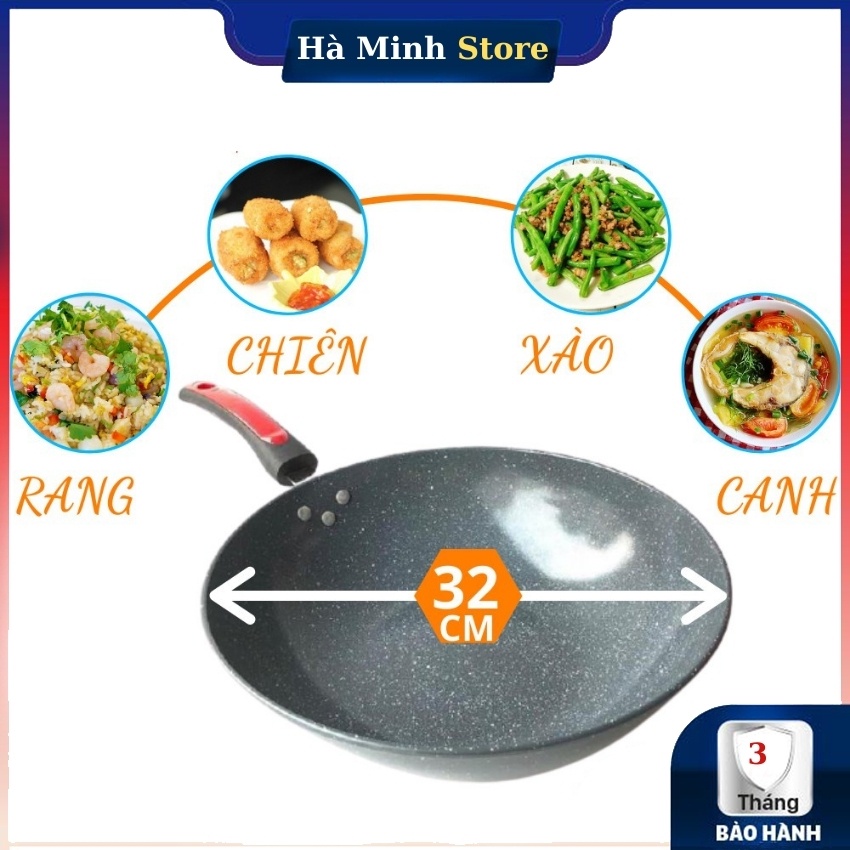 Chảo Đá Sâu Lòng Ceramic Size 32 Siêu Chống Dính, An Toàn, Không Đổi Màu, Dùng Cho Tất Cả Các Loại Bếp, Gia Dụng Hà Minh