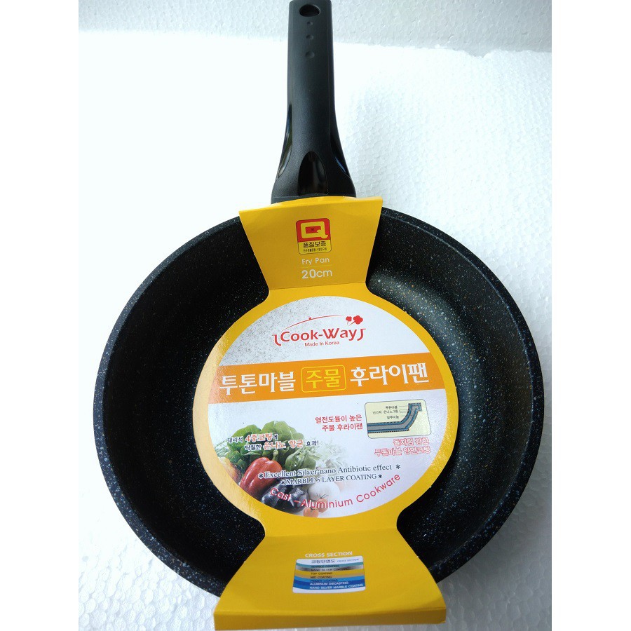 Giới thiệu sản phẩm Chảo đá từ chống dính Cook Way Hàn Quốc SSIH4 (Đen)Dùng được mọi loại bếp nấu đặc biệt là bếp từ