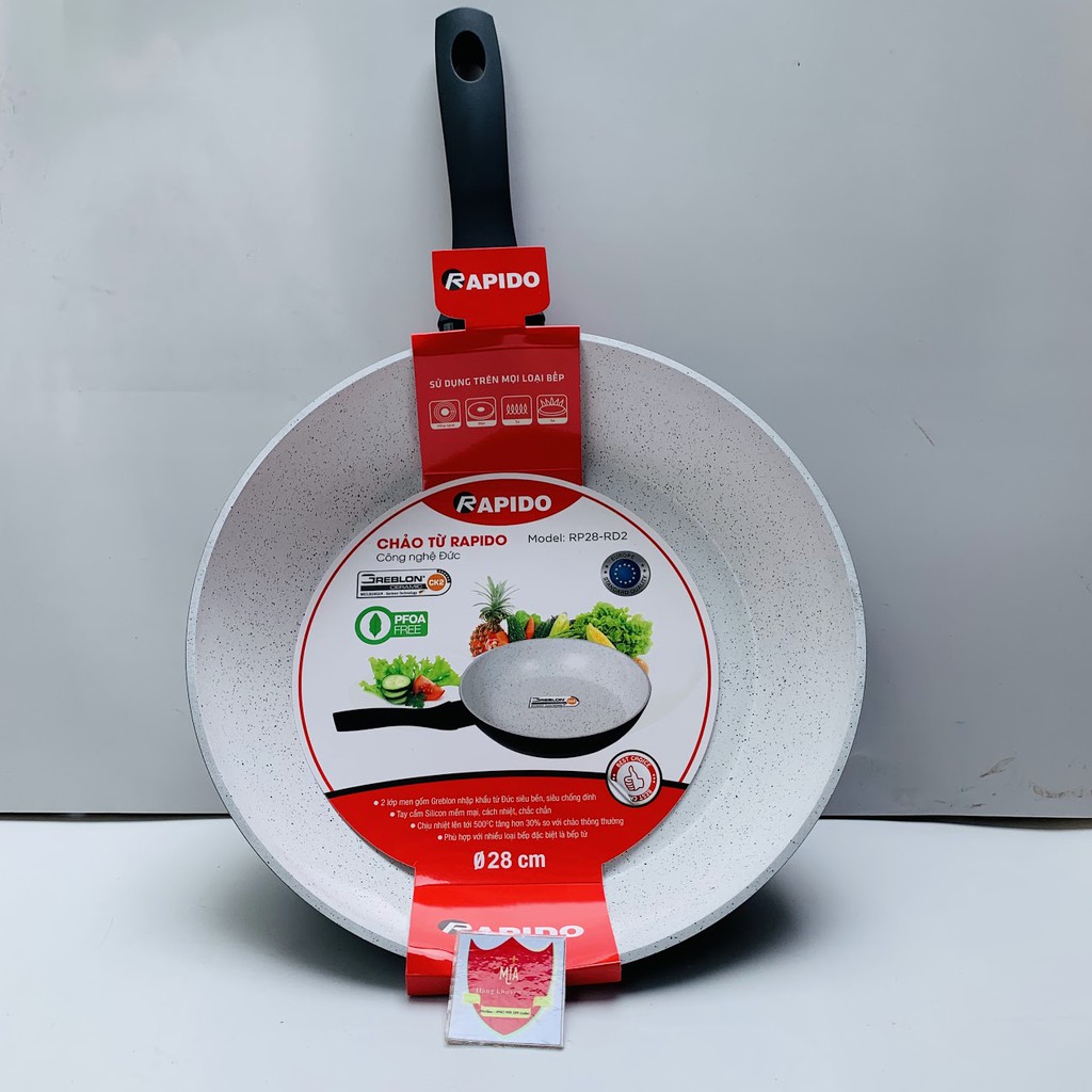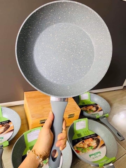 - Chảo sử dụng vân đá bao phủ cả bên trong và mặt ngoài chảo, chống trầy xước và bám bẩn cực tốt
