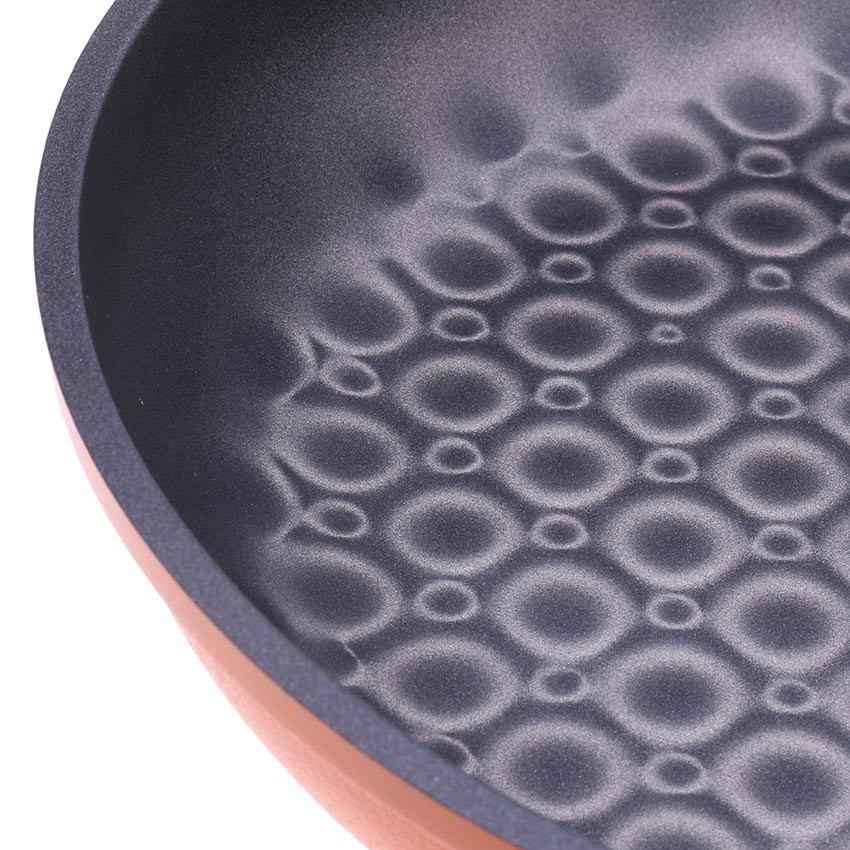 - Với lớp phủ 3D Nano - Kim Cương và các hạt tăng cường Nano trong lòng, chảo chống dính gần như tuyệt đối, Không cần đổ dầu vào rán vẫn được.