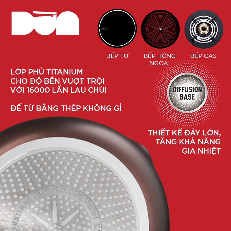 Tefal, thương hiệu đồ gia dụng nổi tiếng của Pháp, giới thiệu dòng Day by Day với các sản phẩm làm bằng hợp kim nhôm phủ lớp chống dính titanium-reinforced an toàn cho sức khỏe. Hãng công bố rằng lớp phủ này giúp sản phẩm chịu được 16,000 lần chà nhám nhưng hiệu quả đến đâu xài lâu mới biết. Nói chung của bền tại người, loại đồ có phủ bề mặt thì kinh nghiệm của Dừa là không nên chà nhám.