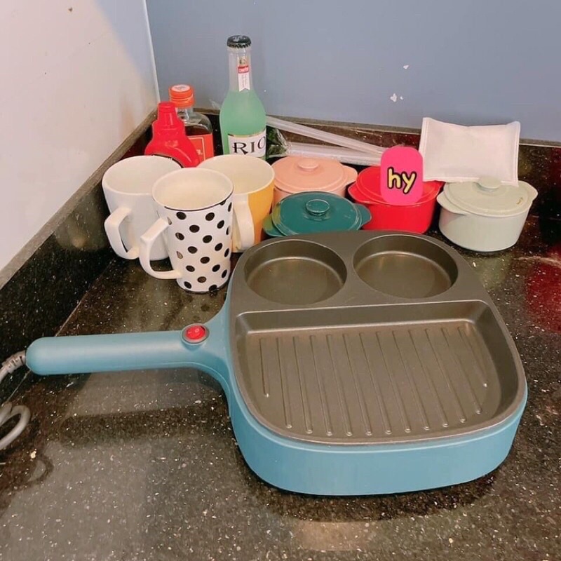 - Chảo chia 3 ngăn, 2 ngăn tròn làm bánh, ngăn to dùng chiên, xào tiện lợi.