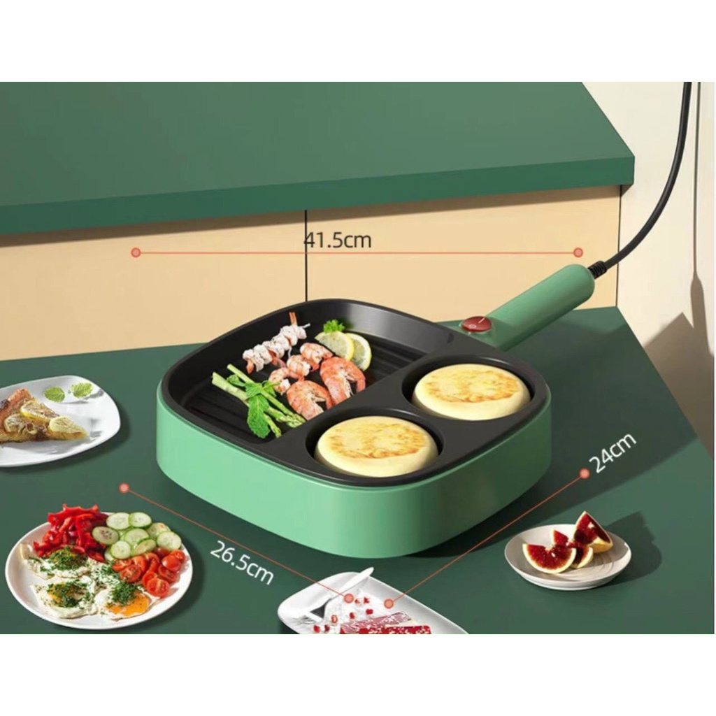 Giới thiệu Chảo Điện 3 Ngăn Chống Dính Cao Cấp, Chảo Ốp La Trứng, Làm Bánh Mì, Chiên,Xào Đa Năng