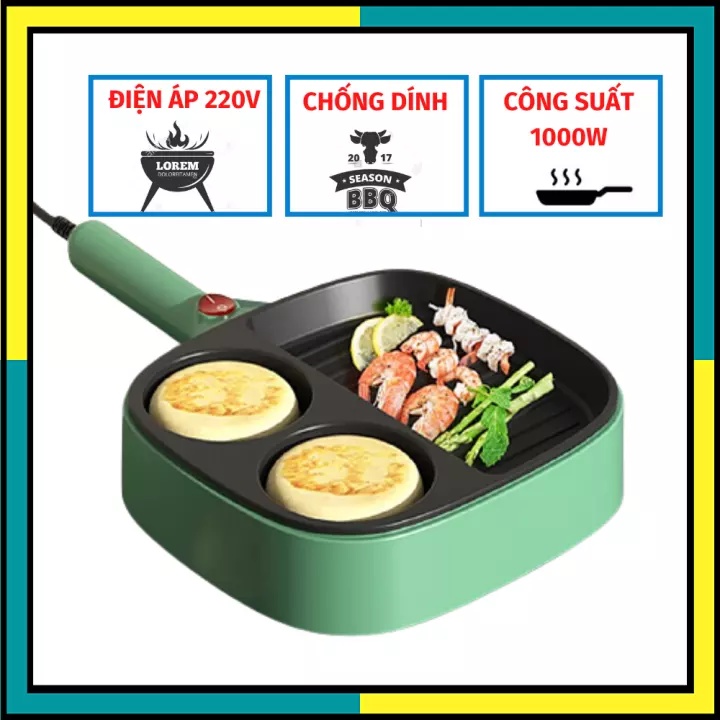 Chảo Điện 3 Ngăn Chống Dính Cao Cấp, Chiên Xào Nướng Đa Năng