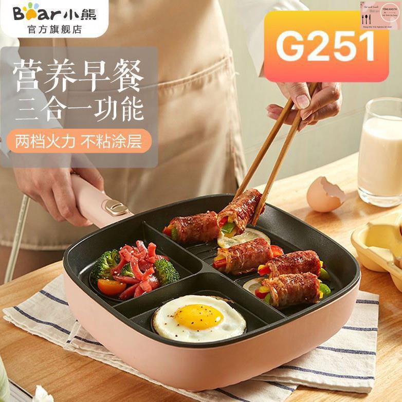 Chảo điện 3 ngăn chống dính mini, Chảo ốp la trứng, Làm Bánh Mì, Chiên, Xào Đa Năng Cao Cấp