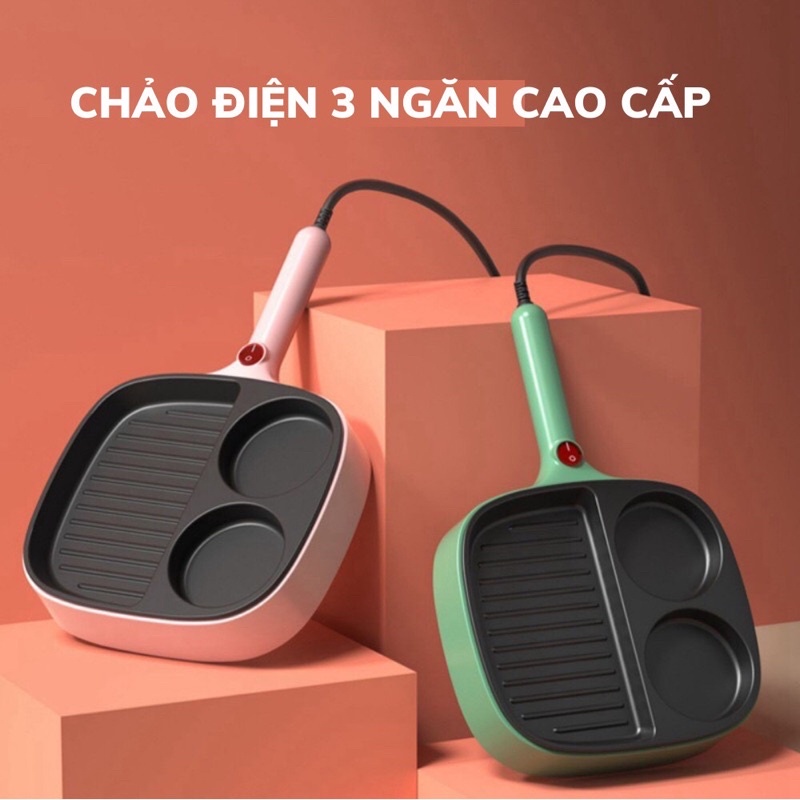 Chảo Điện Chống Dính 3 Ngăn Cao Cấp - Chảo Ốp La Trứng, Làm Bánh Mì, Chiên,Xào Đa Năng Tiện Lợi Cho Nhà Bếp