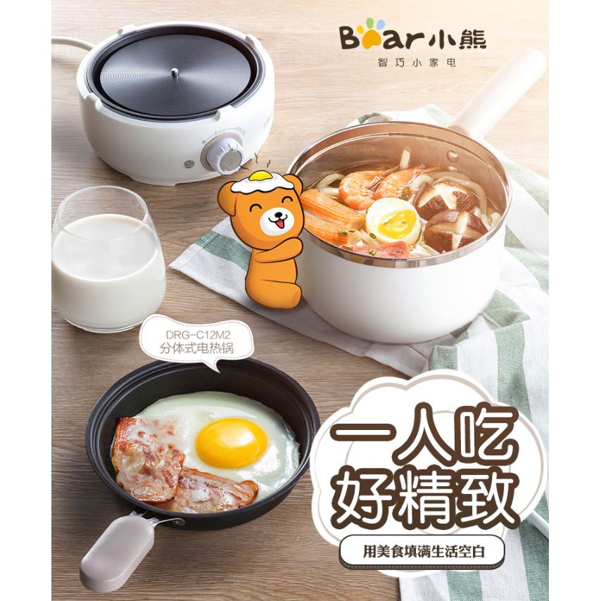Nồi Nấu Điện Đa Năng Mini Bear DRG-C12M2 với bộ nồi nấu, xửng hấp, chảo chiên, giúp bạn chế biến được nhiều món ăn khác nhau, thích hợp cho khẩu phần ăn từ 1-2 người, mang đến cho bạn những bữa ăn thơm ngon, nóng hổi mà không mất quá nhiều thời gian, công sức chuẩn bị.