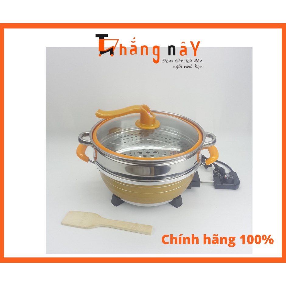 -Sản phẩm gồm: Nồi lẩu, nồi hấp, dây cắm, tặng kèm muôi gỗ