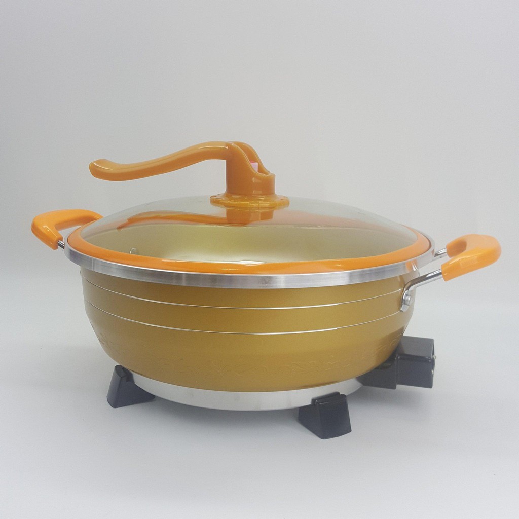 Chảo điện được thiết kế rất thông minh với màu vàng sang trọng, kiểu dáng hình nón truyền thống, nổi bật ở mọi không gian. Chất liệu qua sử lý đánh bóng sáng và độ bền cao, lòng chảo rộng và sâu, dáng đứng chắc chắn.