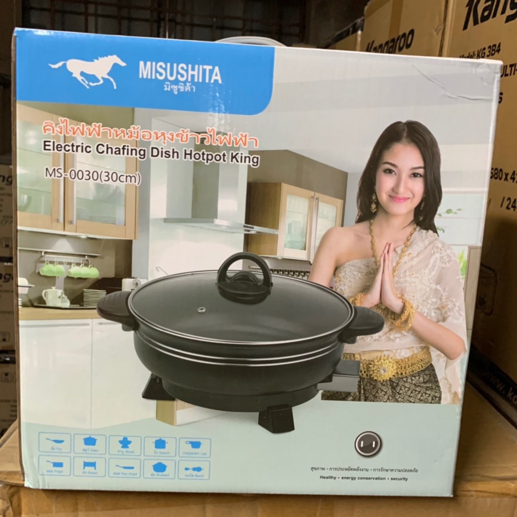 Giới thiệu Chảo điện đa năng Misushita công suất 1500W- Chất liệu: hợp kim nhôm-đường kính 26cm, 28cm, 30cm