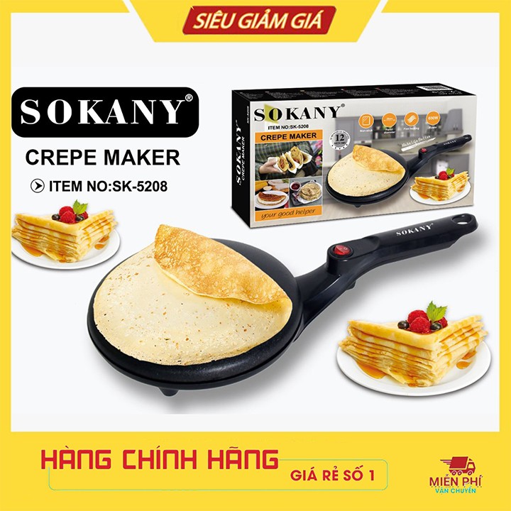 ⛵ Máy làm bánh crepe Sokany model mới nhất hiện tại của hãng, chảo có độ chống dính tốt. Mỗi máy đi kè 1 tô đựng bột.