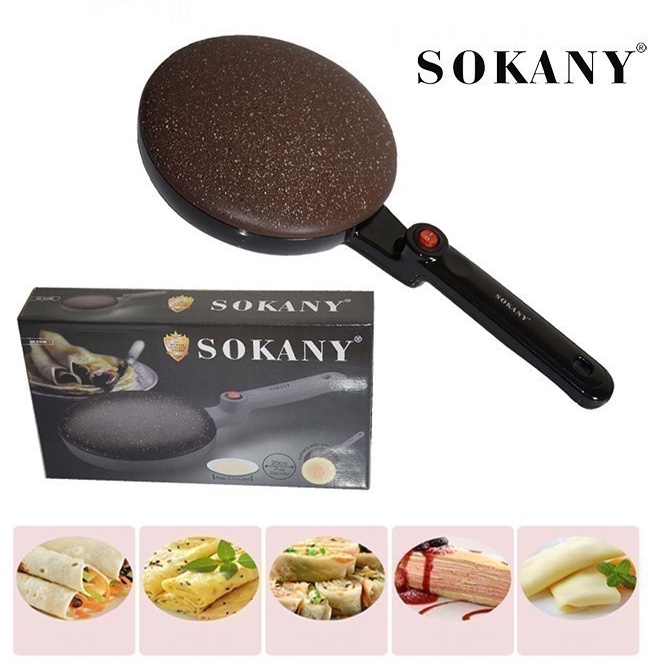 Máy làm bánh crepe Sokany model mới nhất hiện tại của hãng, chảo có độ chống dính tốt. Mỗi máy đi kè 1 tô đựng bột.