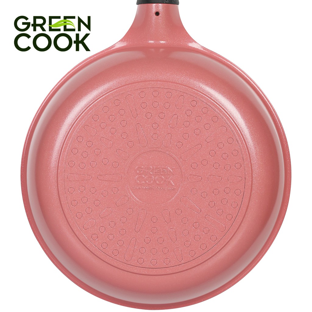 Giới thiệu Chảo đúc chống dính men đá ceramic đáy từ 24 cm Green Cook GCP03-24IHP màu hồng công nghệ 7 lớp chống dính Hàn Quốc