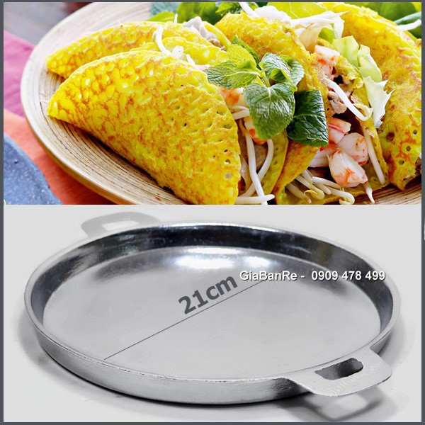 Chảo gang tròn là dụng cụ nhà bếp được nhiều bà nội trợ ưa thích.- Sản phẩm dùng để làm món bánh xèo hay nhiều món chiên khác.