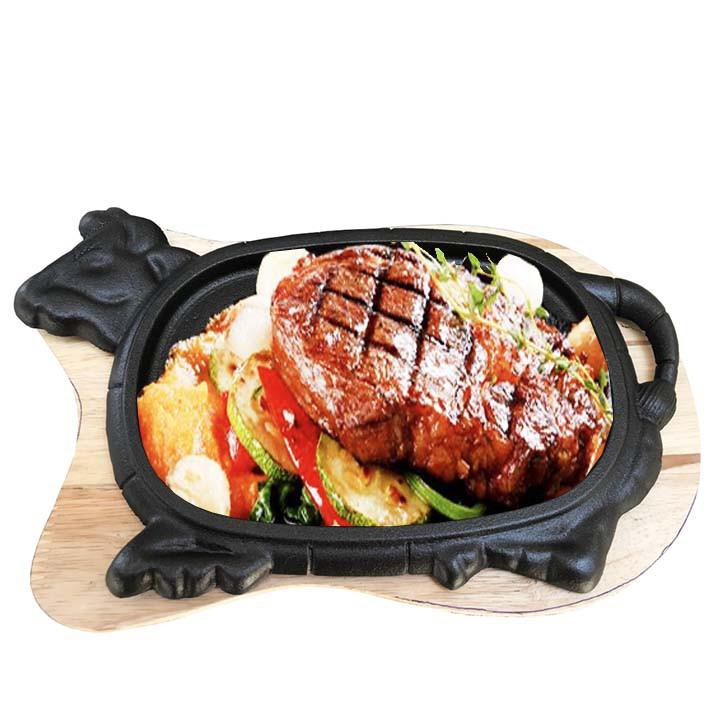 Chảo gang chống dính có đế gỗ làm bò bít tết Dragon ( chất lượng,uy tín Việt là trên hết)