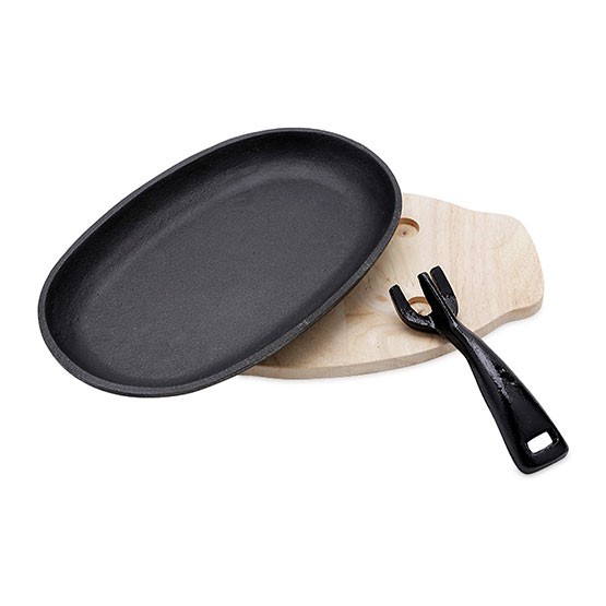 Bộ Chảo Gang Chống Dính Kèm Đế Gỗ Oval HVNCLC