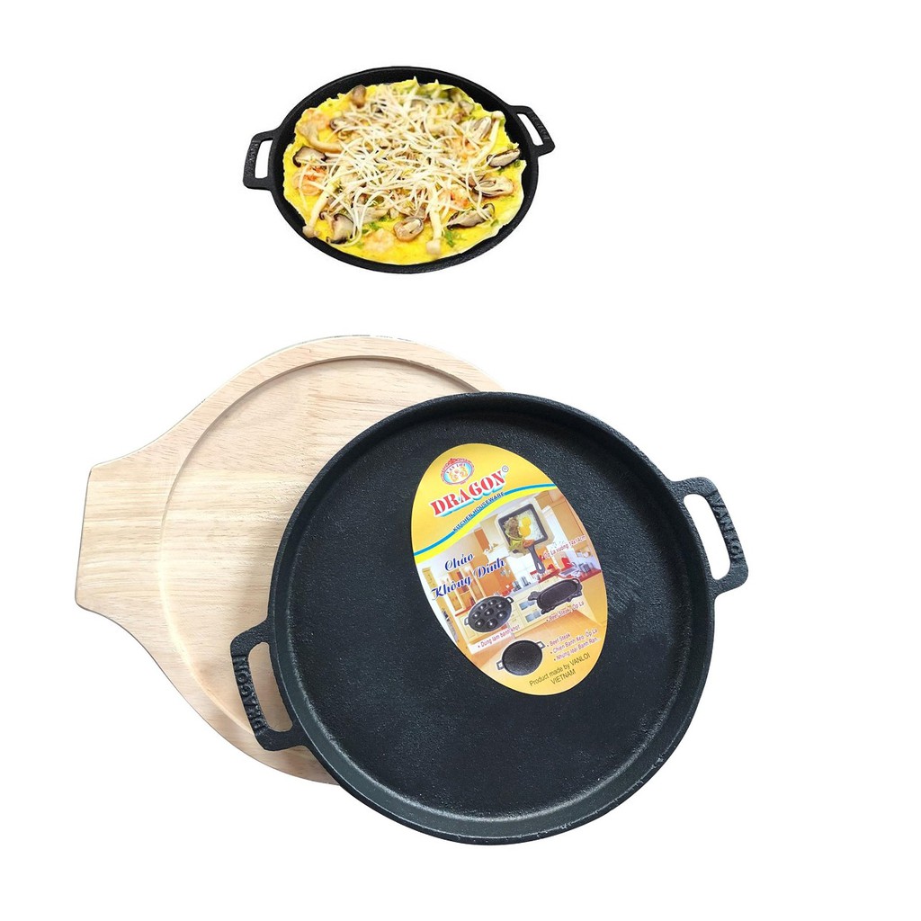 Chảo Gang Chống Dính Làm Bánh Xèo, Bánh Mì Chảo Kèm Đế Gỗ Cao Cấp Tiện Dụng