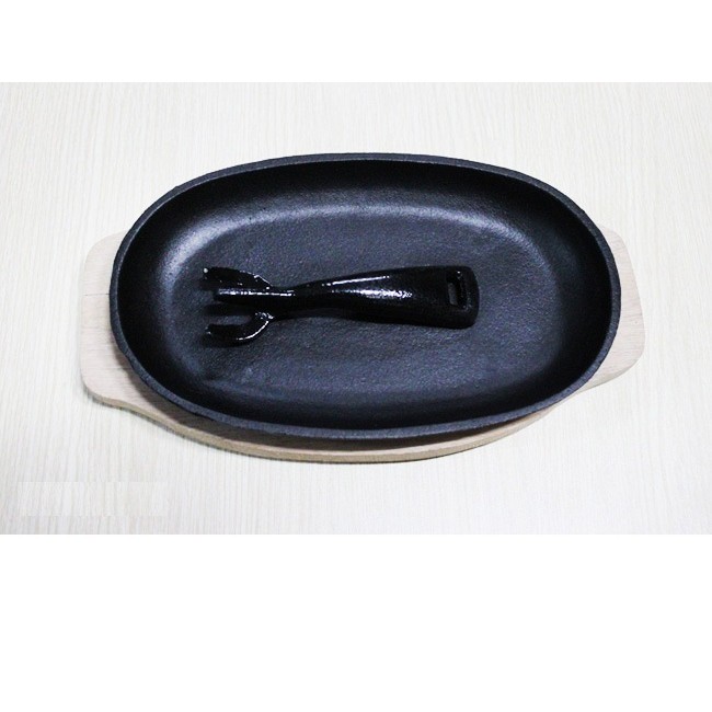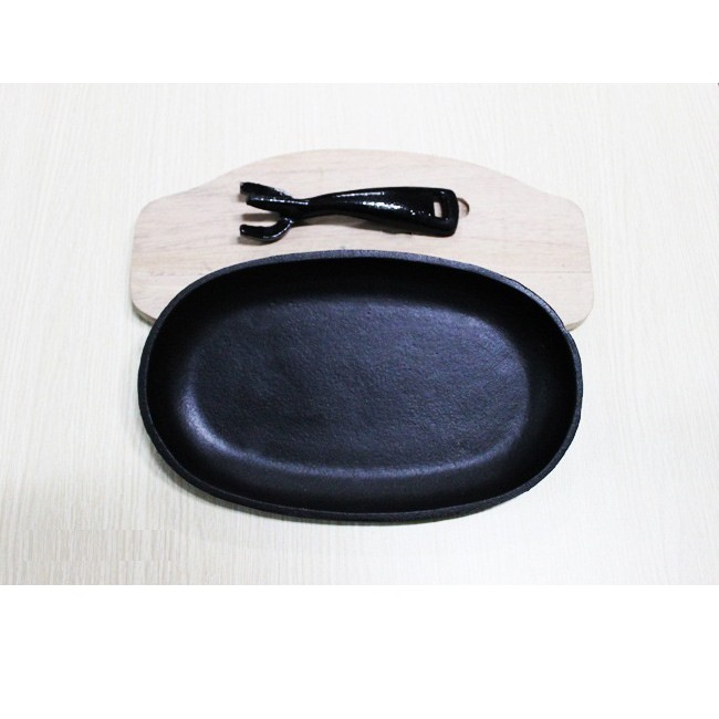 Bộ Chảo Gang Chống Dính Oval Kèm Đế Gỗ Và Cây Gấp Chống Nóng