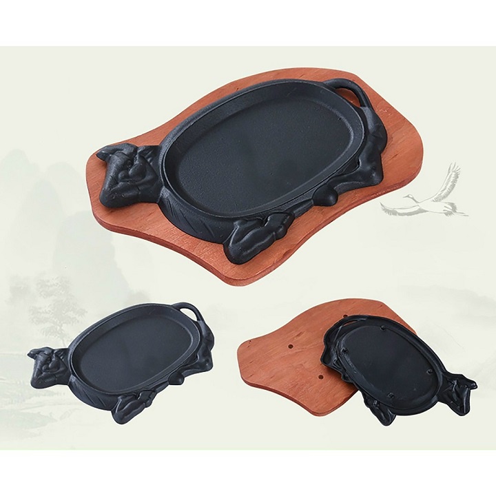 Bộ chảo gang đầu 18 cm bò có lót gỗ