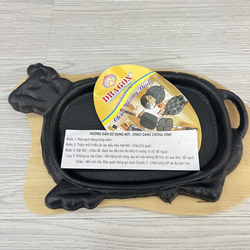 Giới thiệu Chảo gang không dính làm bò né Vạn Lợi HÀNG CAO CẤP,chảo gang làm bò bít tết kèm đế lót gỗ chống dính