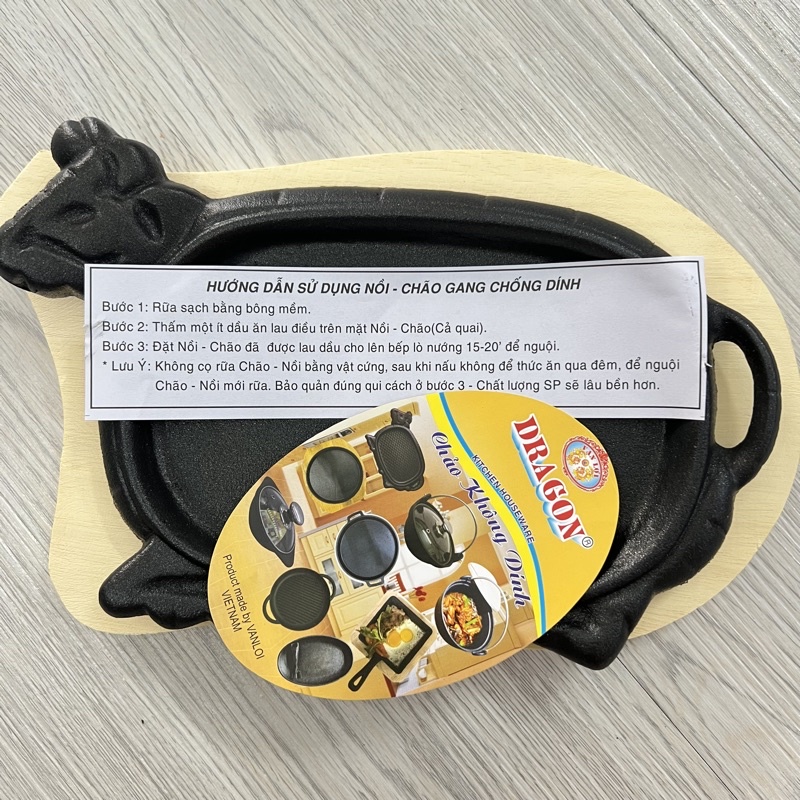 Nhà cửa & Đời sống > Dụng cụ nhà bếp > Chảo || Chảo gang không dính làm bò né Vạn Lợi HÀNG CAO CẤP,chảo gang làm bò bít tết kèm đế lót gỗ chống dínhCòn hàng
