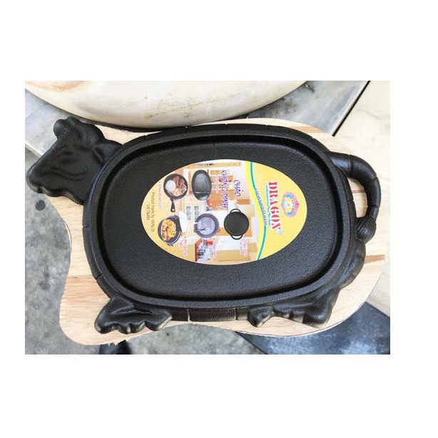 Chảo Gang Làm Bò Né Chống Dính Kèm Đế Gỗ Thương Hiệu Dragon