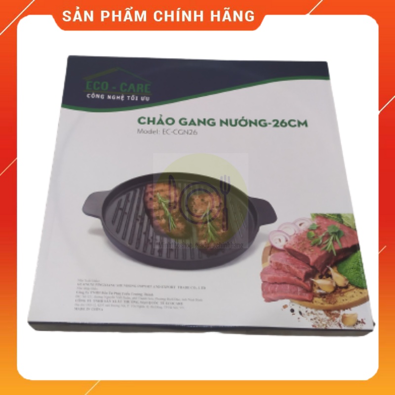 Nhà cửa & Đời sống > Dụng cụ nhà bếp > Chảo || Chảo gang nướng chống dính ECO-CARE, đường kính 26cm, có rãnh thoát dầu, dùng cho bếp từ, bếp hồng ngoại, bếp điện từ…Còn hàng