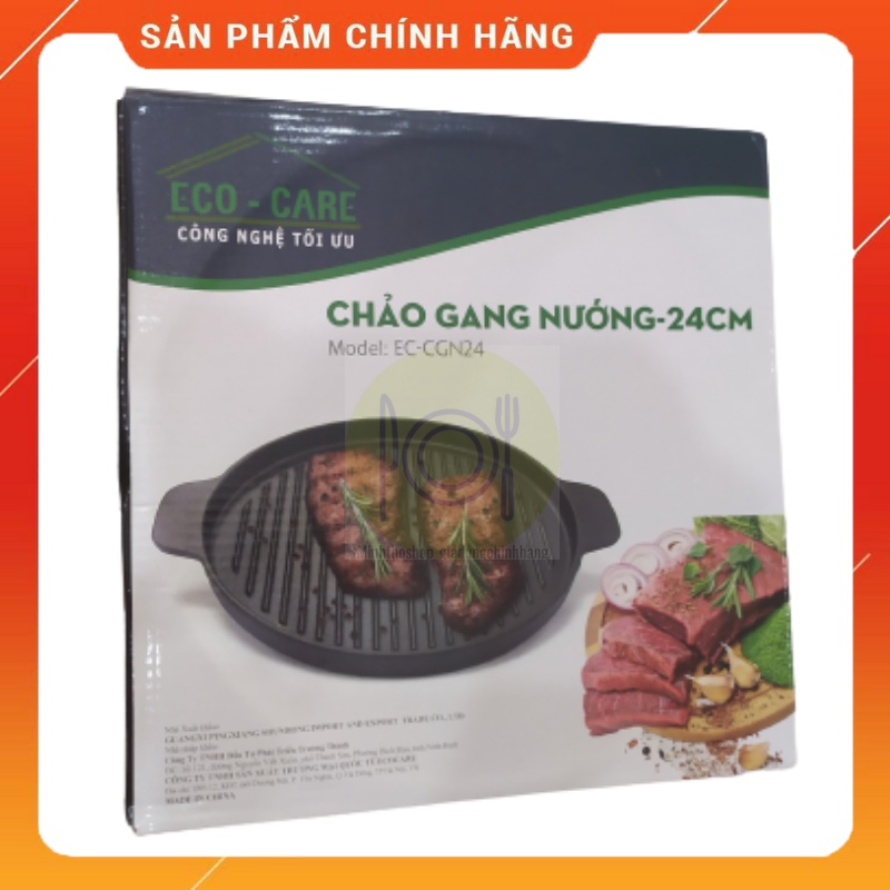 Chảo gang nướng chống dính ECO-CARE, đường kính 24cm, có rãnh thoát dầu, dùng cho bếp từ, bếp hồng ngoại, bếp điện từ…