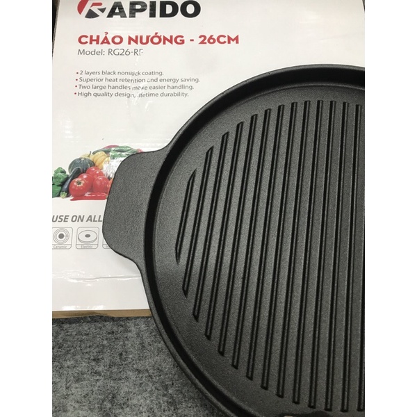Nhà cửa & Đời sống > Dụng cụ nhà bếp > Chảo || Chảo gang nướng không dính Rapido, chảo gang bếp từ chống dính 26 cm chính hãngCòn hàng