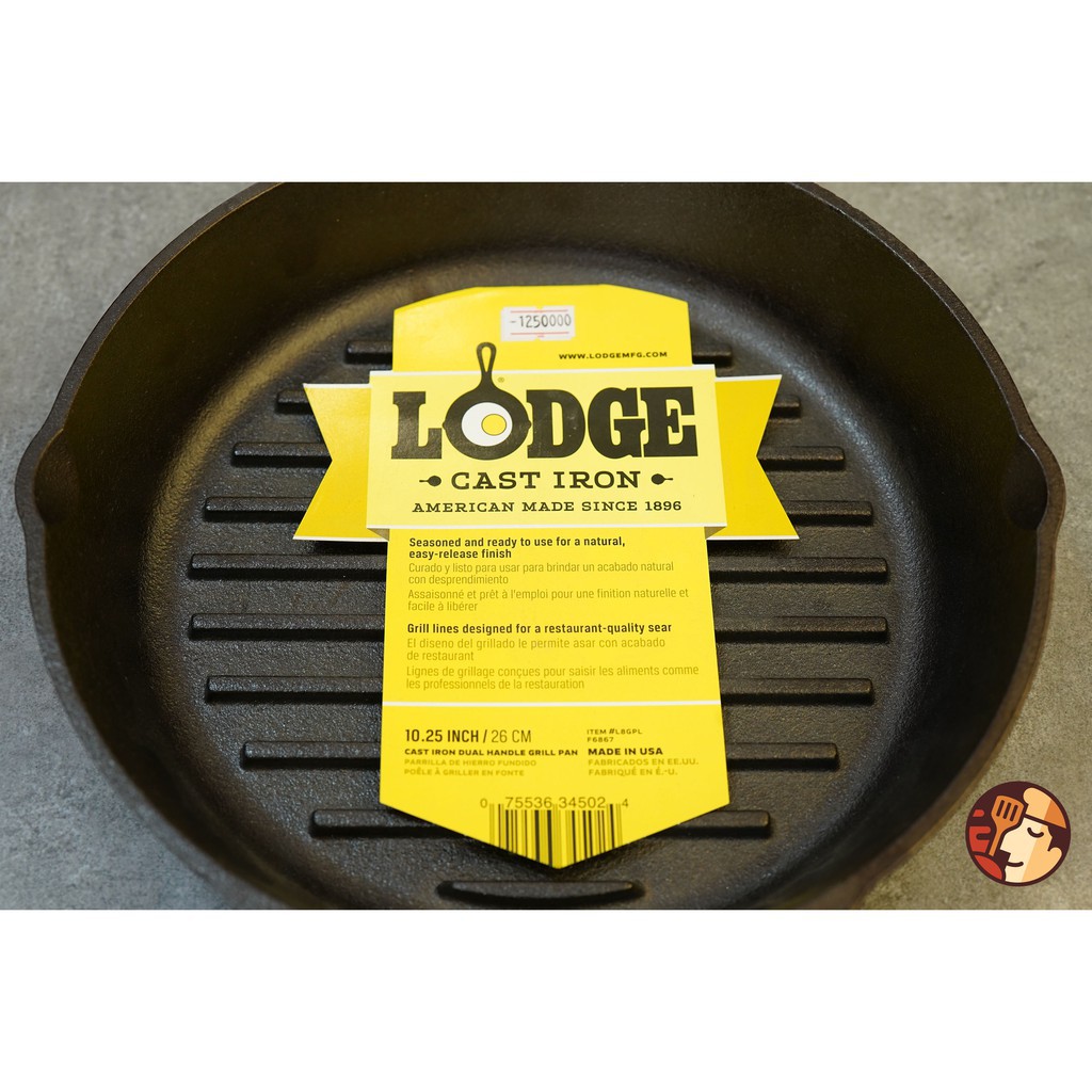 Giới thiệu Chảo gang nướng Lodge hai tay cầm có rãnh tròn 26cm chống dính tự nhiên, dùng được cho mọi loại bếp và lò nướng