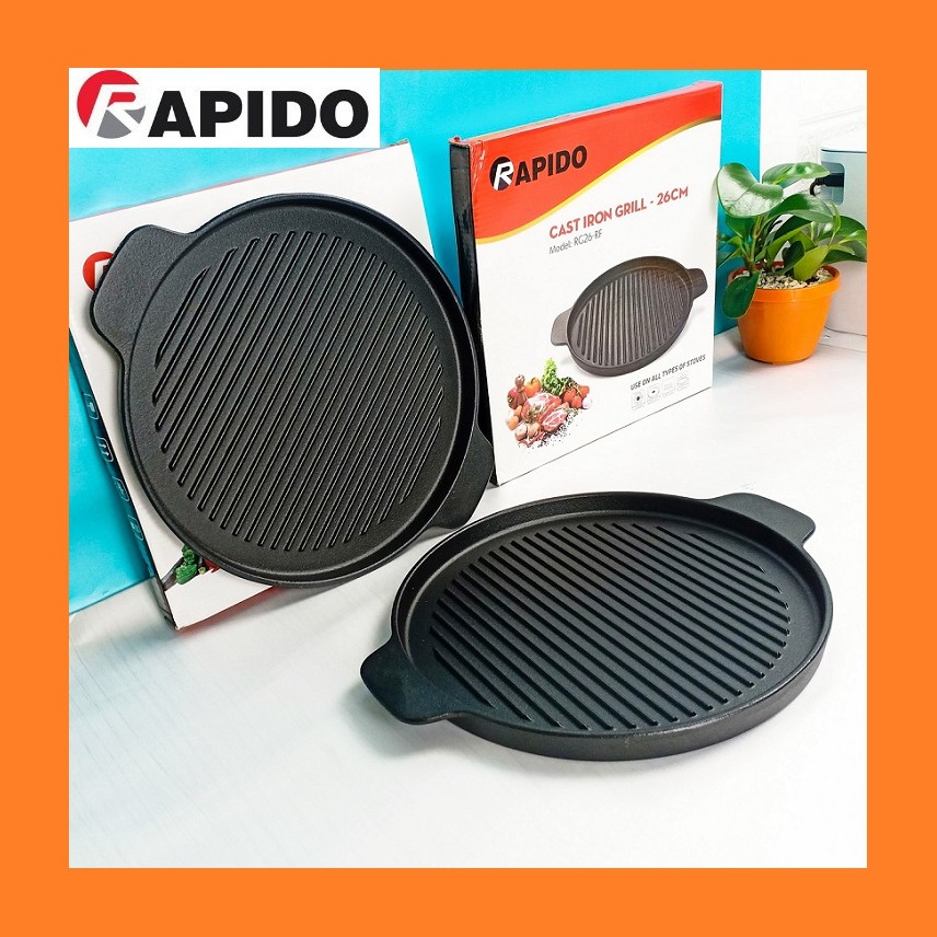 Chảo gang nướng RAPIDO 26cm chống dính - chảo nướng pizza BBQ dùng được bếp từ