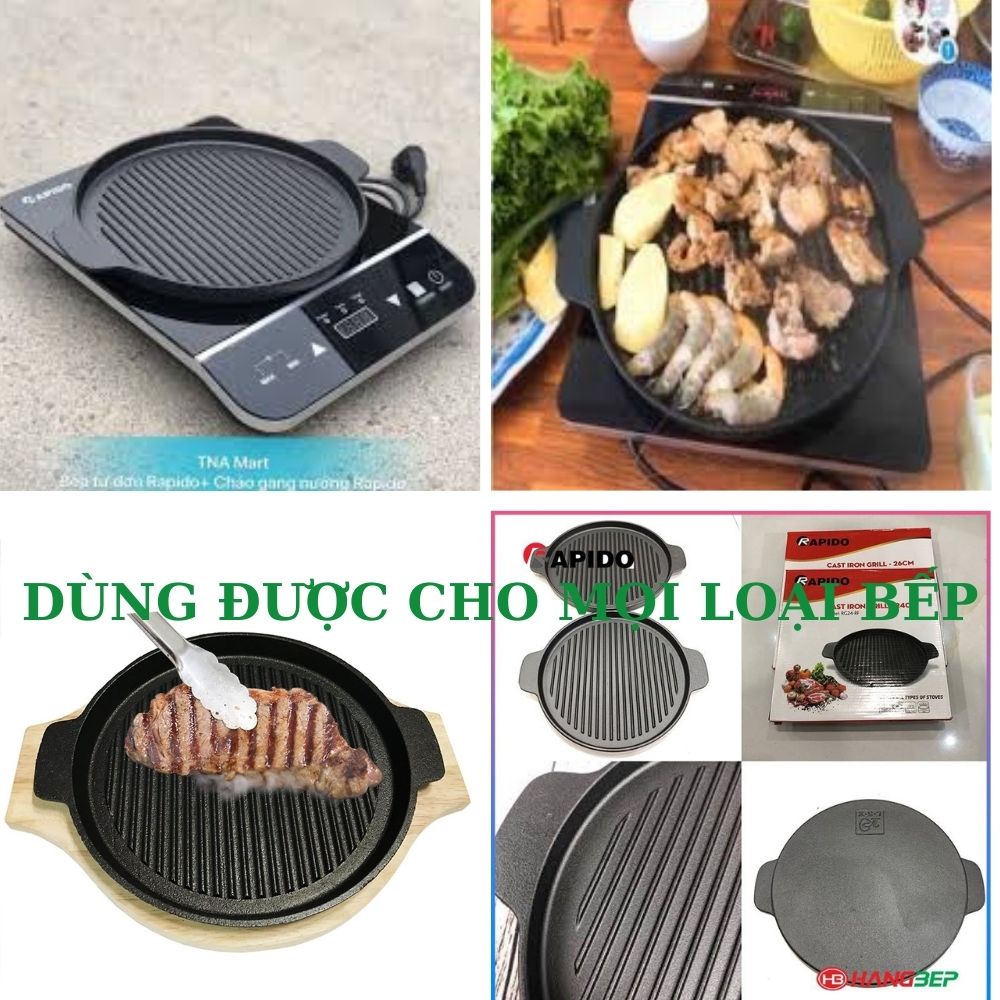 Chảo Gang Nướng Thịt Hàn Quốc Rapido Mẹ Gạo, chảo nướng thịt hàn quốc rapido size 24cm, 26 cm dùng cho mọi loại bếp👉Dùng mọi loại bếp